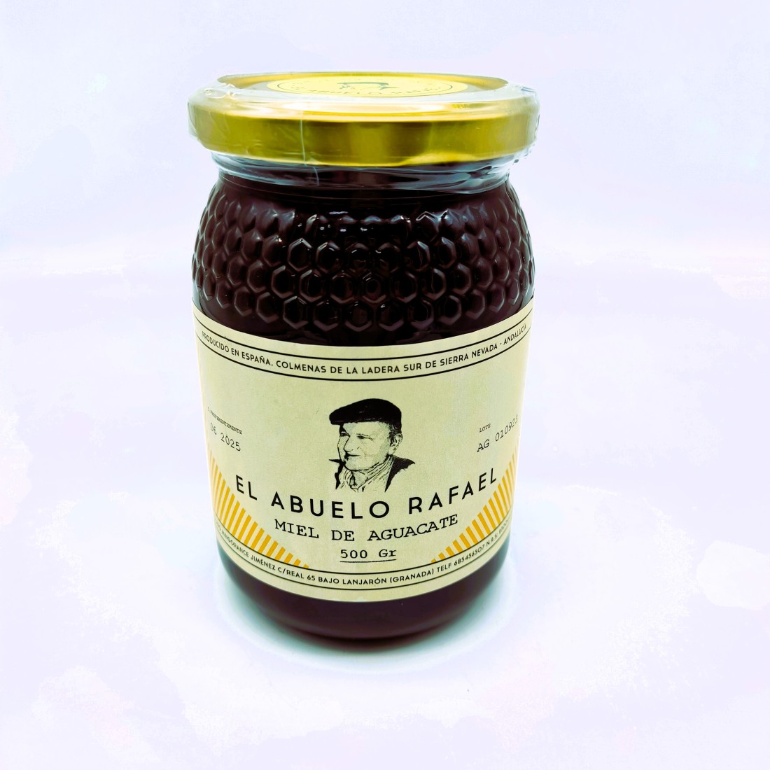 La miel del Abuelo Rafael procede de la cara sur de Sierra Nevada. Las colmenas están ubicadas a diferentes alturas de la sierra, dependiendo del tipo de vegetación; así la miel de castaño procede de la zona de Pampaneira, a unos 1050 m de altitud. Las otras mieles, romero y mil flores se recolectan en la zona de Lanjarón, en la cota 650, lugar famoso por su balneario y la calidad de sus aguas, reconocida por diferentes investigadores, incluida la OMS, y a la que se le atribuyen la extraordinaria longevidad y salud de los habitantes de la zona.