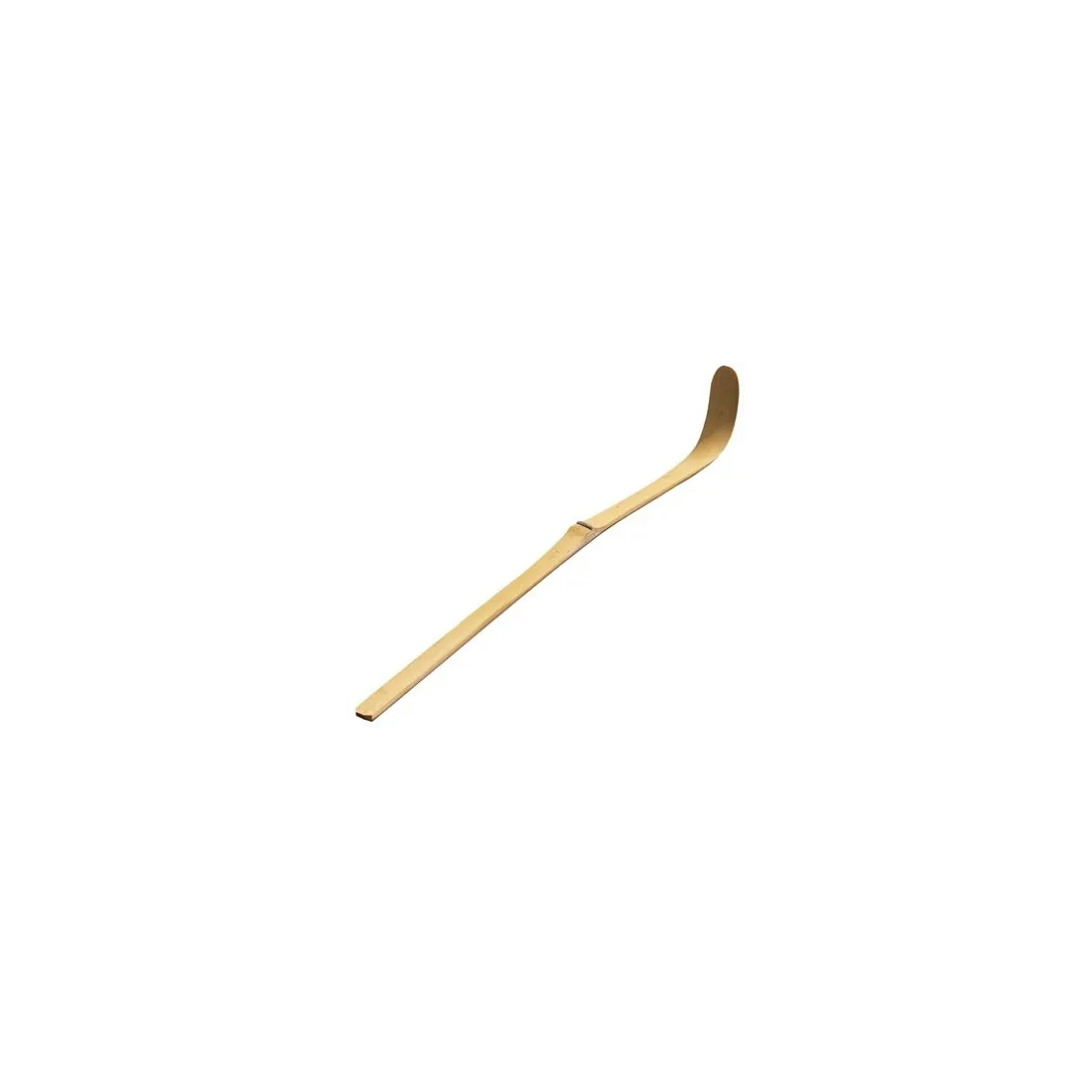 Longitud y Forma: La Chasaku tiene una longitud específica y una forma única. Por lo general, mide alrededor de 18 cm de longitud y tiene una forma delgada y curva en el extremo, que facilita la recogida y medición precisa del matcha.