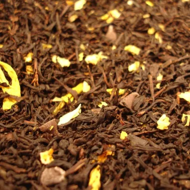 Ingredientes: Té negro, chips de chocolate y corteza de naranja, girasol pétalos.