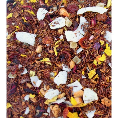 Rooibos, manzana, piña, coco, hibisco, escaramujo, girasol y aroma.
