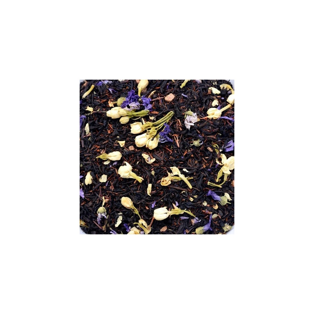 El Té Embrujo de Granada ofrece una experiencia sensorial única, capturando la esencia y el romanticismo de Granada en cada sorbo. Esta mezcla seductora combina la robustez del té negro con la suavidad del rooibos, creando una base perfecta para los ricos y voluptuosos sabores de la vainilla y el caramelo inglés. La adición de delicadas flores de jazmín introduce un toque floral sutil, mientras que los trozos de caramelo y la malva flor añaden una dimensión de dulzura y color, haciendo de cada taza una delicia para los sentidos. Ideal para ser disfrutado solo o realzado con un toque de leche, este té invita a un viaje gustativo al corazón de Andalucía.