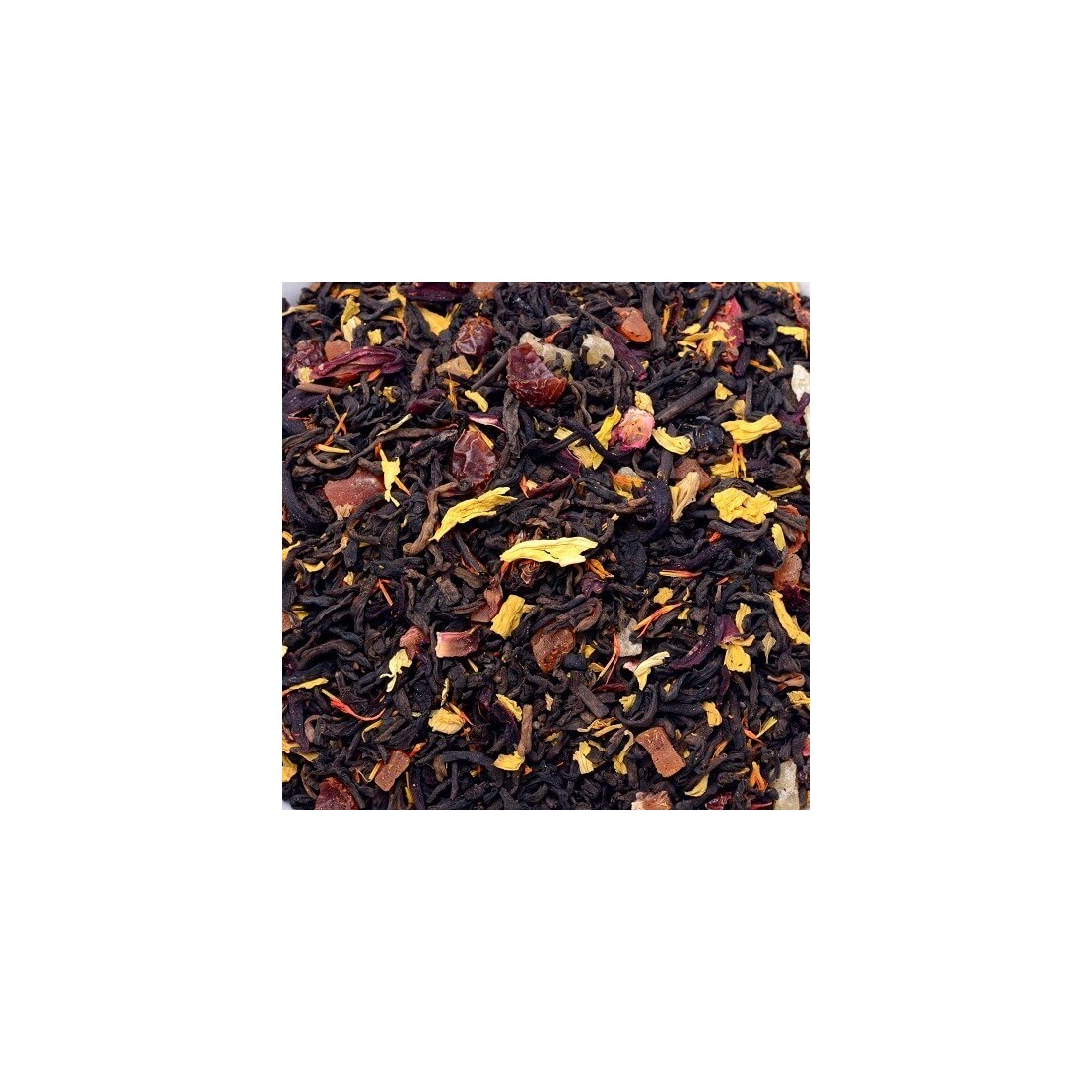 Ingredientes: Té rojo, piña, papaya, hibisco, escaramujo, pétalos de girasol, flor de cártamo y aroma tropical.
