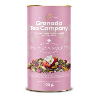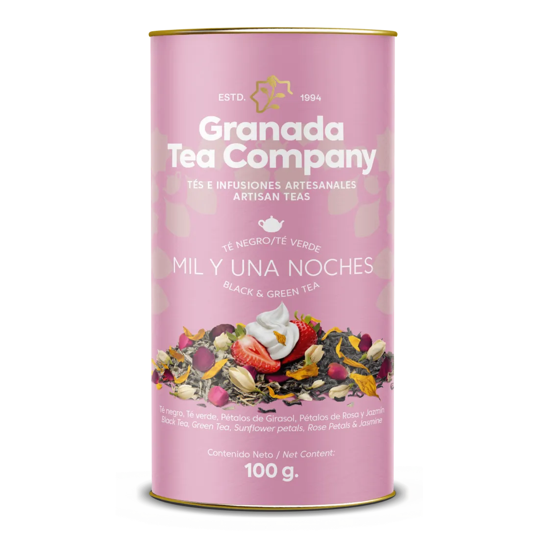 El té Mil y Una Noches es una intrigante mezcla que combina cuidadosamente ingredientes selectos para crear una experiencia de sabor rica y tentadora. La combinación equilibrada de té verde Sencha y té negro ofrece una base sólida que abarca desde notas frescas y herbáceas hasta matices más robustos y profundos.