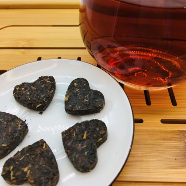 Té negro prensado en pequeños corazones, de la provincia de Yunnan. Un corazón por taza, para un regalo de té cordial.
