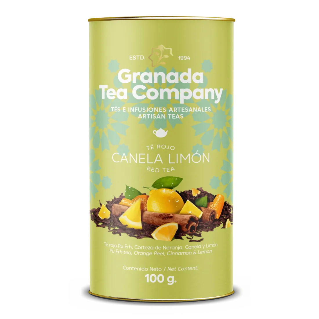 Ingredientes: Té rojo, canela troceada, corteza de limón y aroma natural